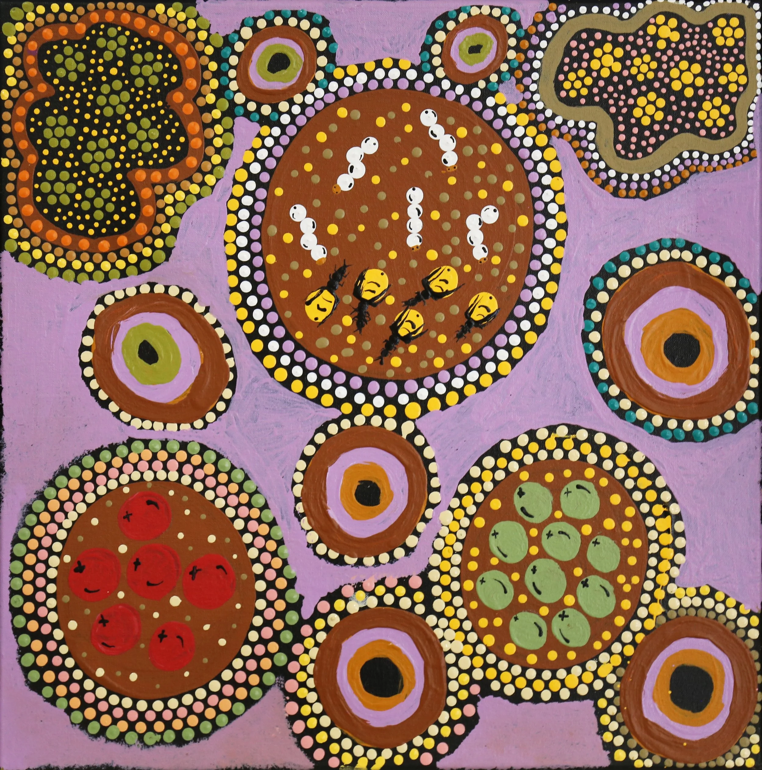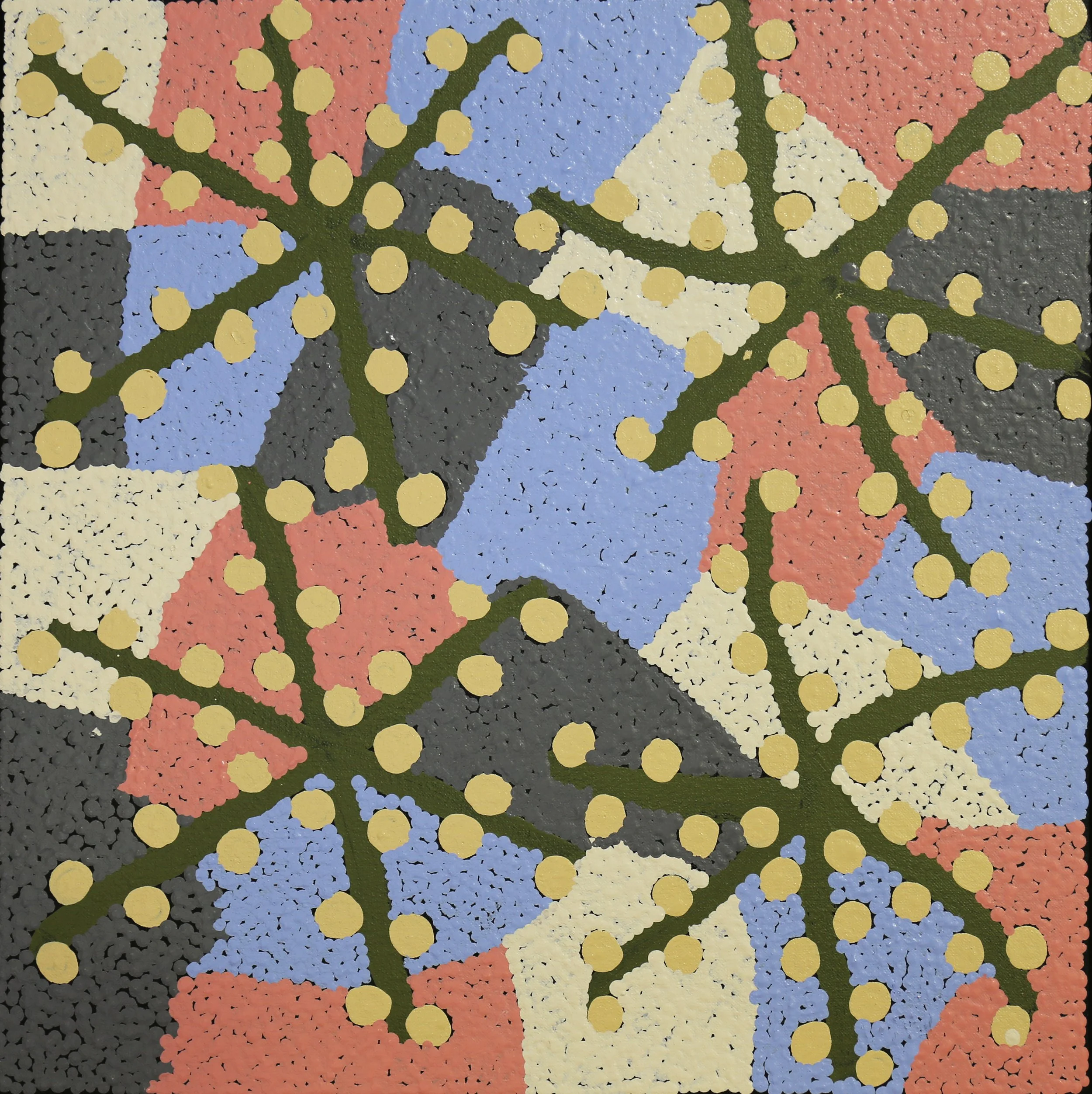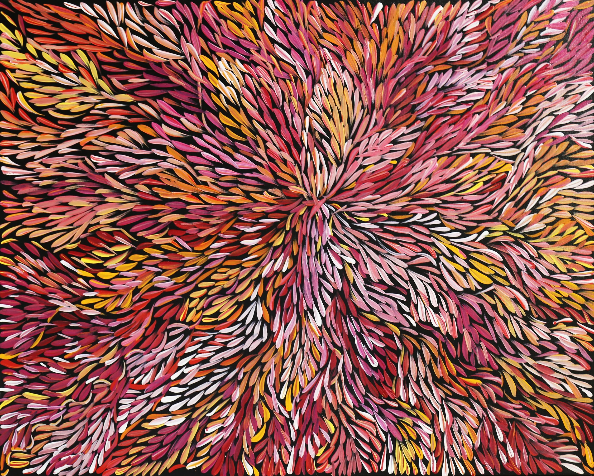 Want to purchase an artwork? Drop us a line at arts@tangentyere.org.au or click ENQUIRE and contact us with the #number and artist name. Please note that these prices are exclusive of stretching and shipping. We send paintings rolled and with Australia Post, sign on delivery. Paintings wider than 84cm are sent with TNT. When we send your artwork with either company we will email you the tracking number.